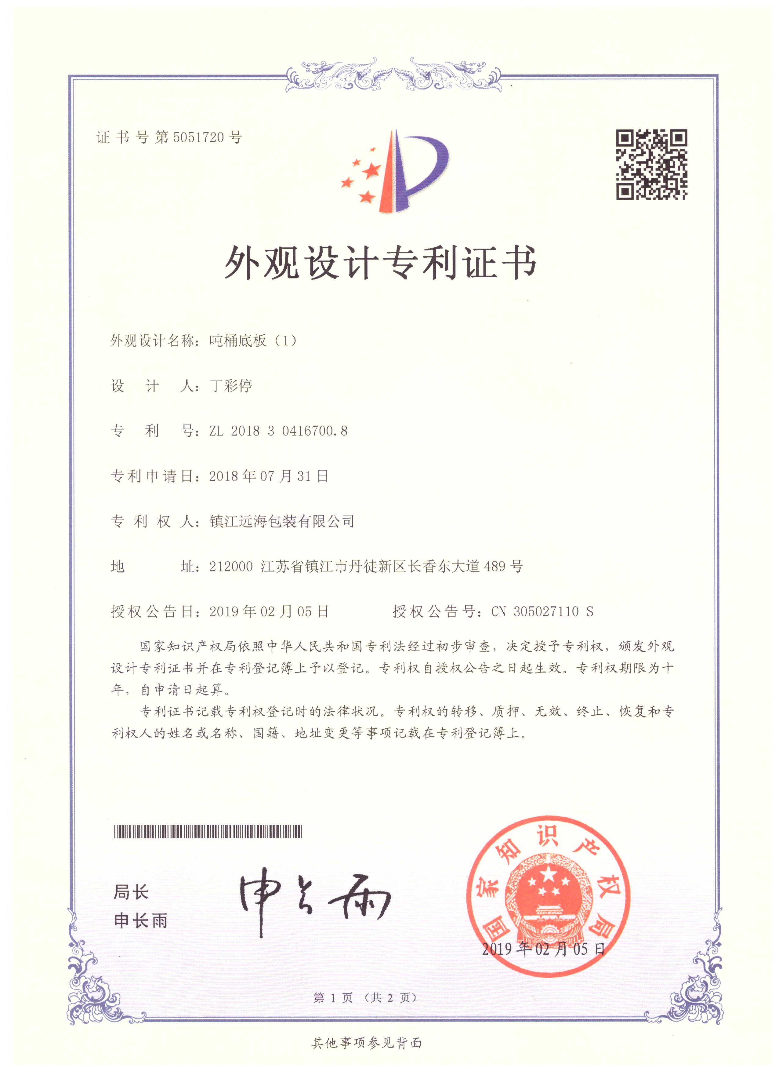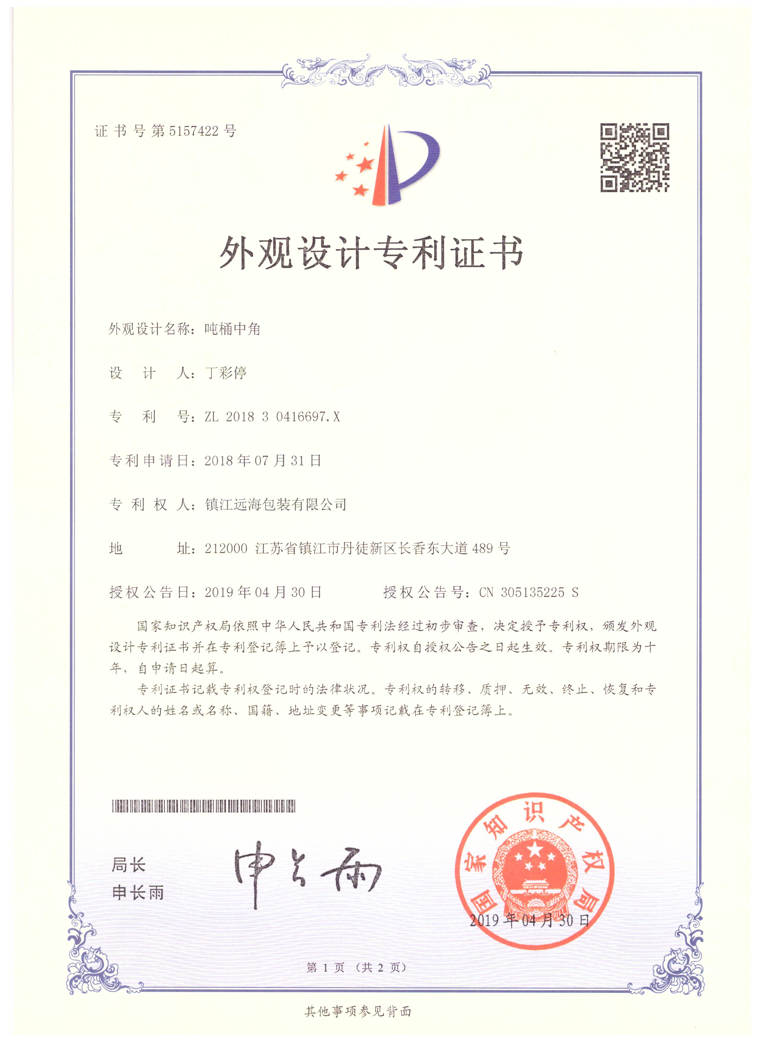 MORE>>Zhenjiang Yuanhai Packaging Co., Ltd. was established in August 2014. It is an enterprise specializing in the production of IBC drums and spare parts. The main products are various types of bottom plates, beams, bottom corners, signs, galvanized welded pipes, etc. The company has 8 patents for appearance and practical products of related products.